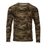 Paragon Adult Woodland Long Sleeve Camo T-Shirt. A modern spin on a standard camo look really stands out with this fresh palette of colors. Make your connection to nature in comfort with moisture wicking and anti-microbial features, keeping you cool and dry. Fabric is wrinkle resistant and gives you a UPF50+ sun protection rating. ParagonXP tear away label, hemmed sleeves and bottom. 3.5 oz